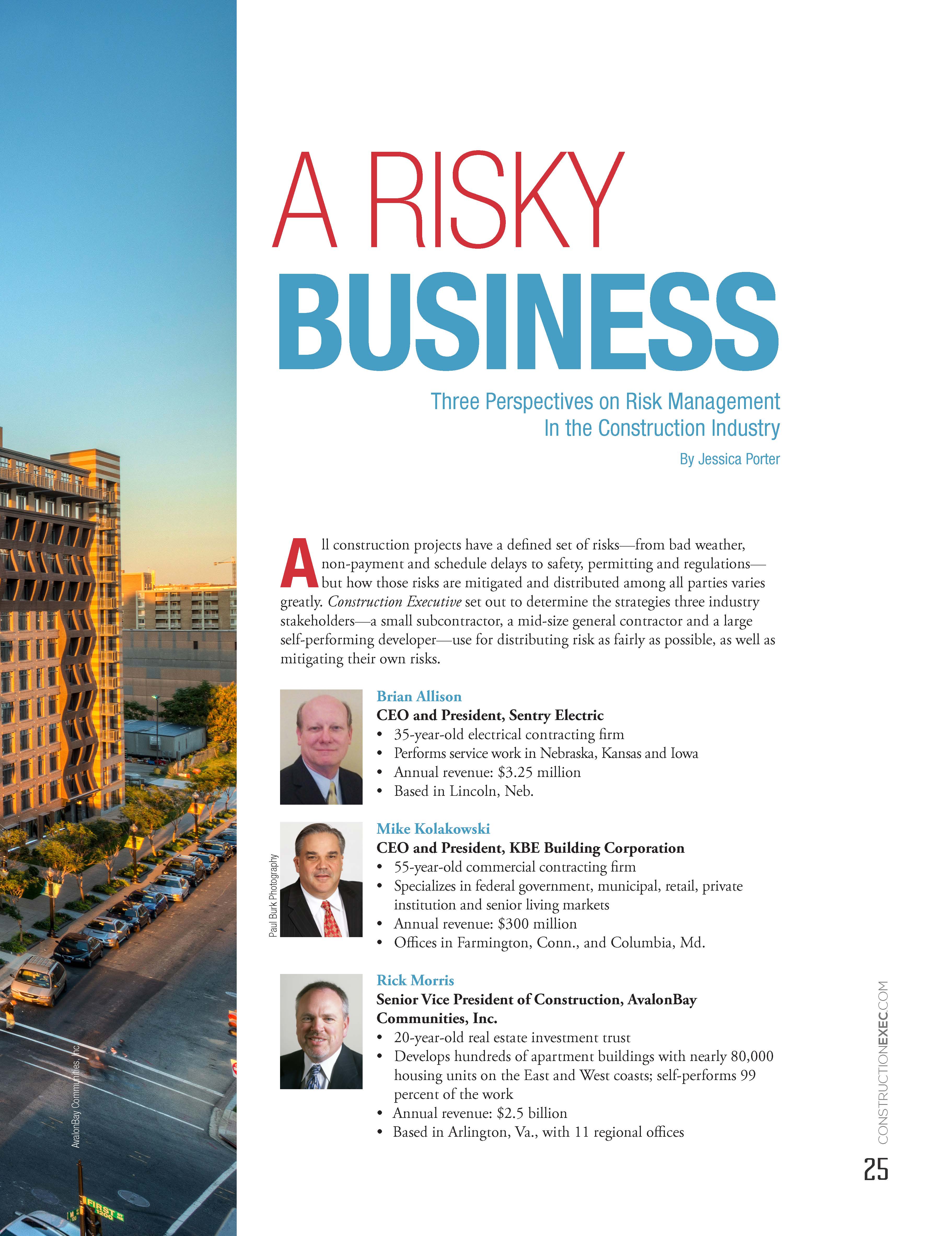 A Risky Business March 17, 2015 Leave a Comment May 2014 Visit Construction Executive for full article. Credit: Construction Executive Share this: Click to share on X (Opens in new window) X Click to share on Facebook (Opens in new window) Facebook Like Loading... Related Construction Executive, Magazines 2014, Construction Executive, May 2014