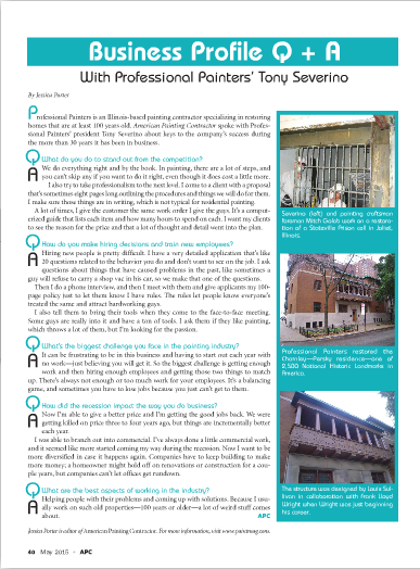 Business Profile Q&A With Professional Painters’ Tony Severino June 29, 2015 Leave a Comment June 2015 Visit American Painting Contractor for full article. American Painting Contractor Share this: Click to share on X (Opens in new window) X Click to share on Facebook (Opens in new window) Facebook Like Loading... Related American Painting Contractor, Magazines 2015, American Painting Contractor, June 2015