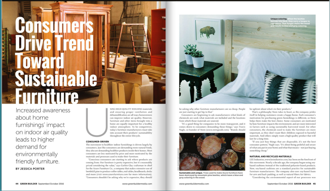 Consumers Drive Trend Toward Sustainable Furniture October 19, 2016 Leave a Comment Green Builder, September 2016 Click here to view the full article (on page 44). Share this: Click to share on X (Opens in new window) X Click to share on Facebook (Opens in new window) Facebook Like Loading... Related Green Builder, Magazines 2016, Green Builder, September 2016