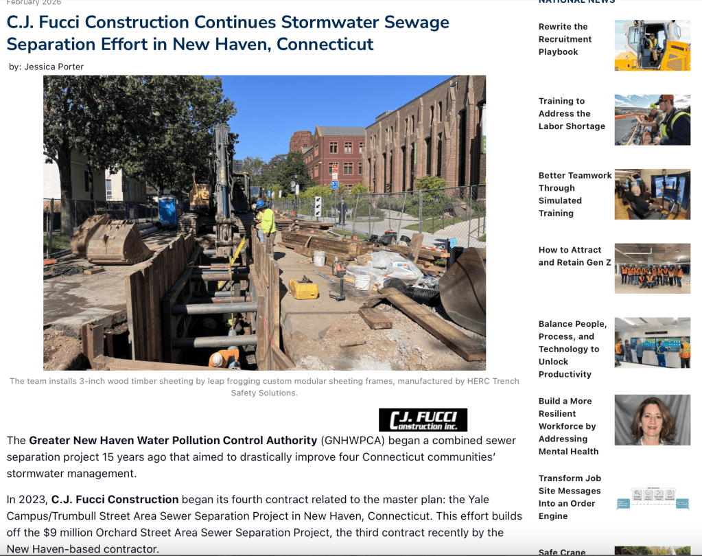 C.J. Fucci Construction Continues Stormwater Sewage Separation Effort in New Haven, Connecticut