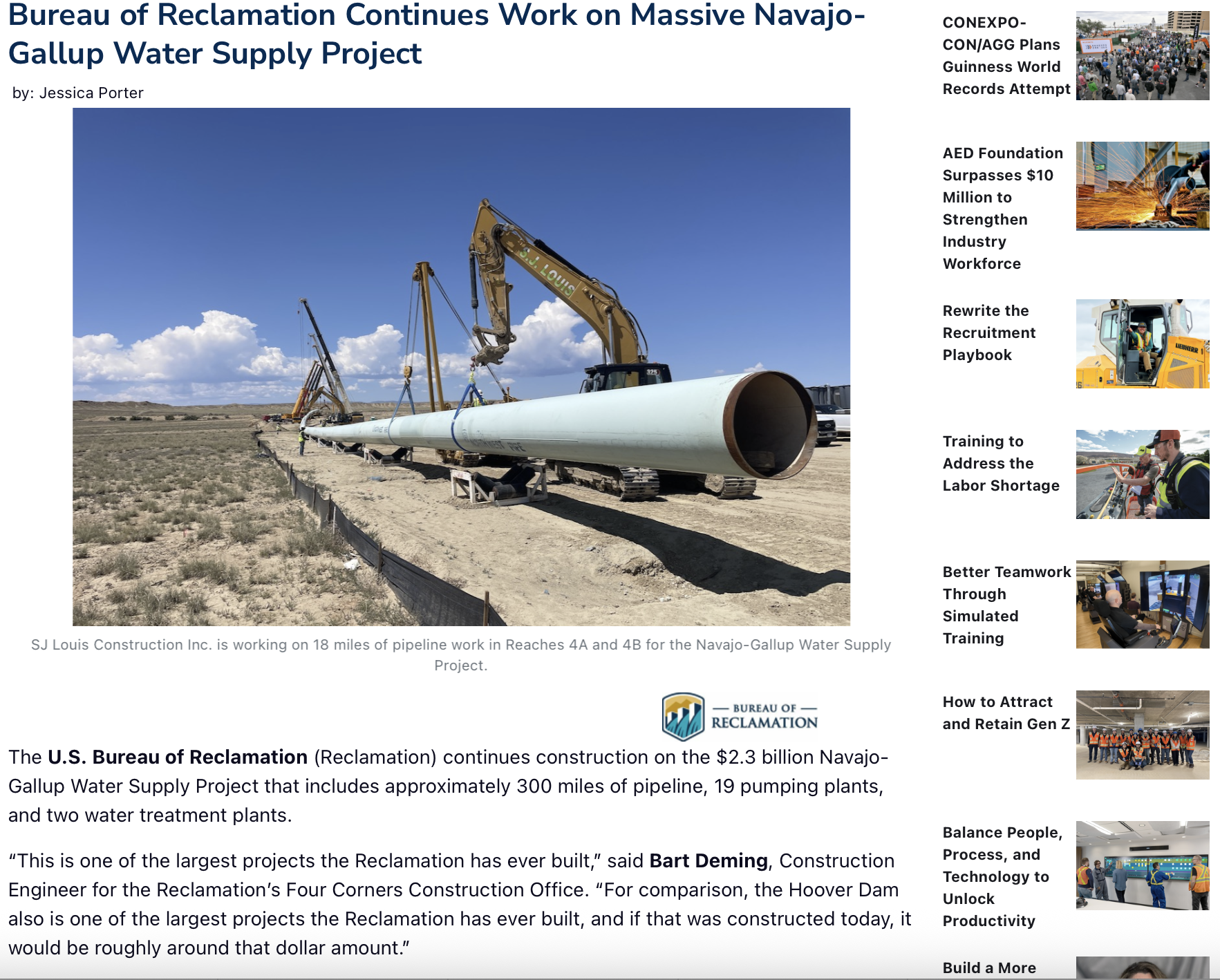 Bureau of Reclamation Continues Work on Massive Navajo-Gallup Water Supply Project 3 weeks ago Rocky Mountain Construction, February 2026 Click here to read the entire article. Share this: Share on X (Opens in new window) X Share on Facebook (Opens in new window) Facebook Like Loading... Related Magazines, Portfolio, Rocky Mountain Construction 2026, February 2026, Rocky Mountain Construction