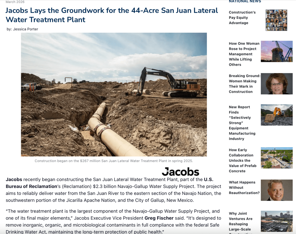 Jacobs Lays the Groundwork for the 44-Acre San Juan Lateral Water Treatment Plant 10 hours ago Rocky Mountain Construction, March 2026 Click here to read the entire article. Share this: Share on X (Opens in new window) X Share on Facebook (Opens in new window) Facebook Like Loading... Related Magazines, Portfolio, Rocky Mountain Construction 2026, ACP, March 2026, Rocky Mountain Construction